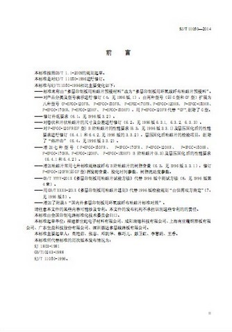 電子行業(yè)標準SJ/T 11050-2014《多層印制板用環(huán)氧玻纖布粘結片預浸料》由咸陽瑞德科技有限公司與福建新世紀電子材料有限公司、上海南亞覆銅箔板有限公司、廣東生益科技股份有限公司、深圳崇達多層線路板有限公司負責起草。
