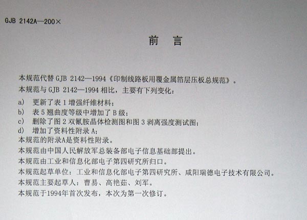印制線(xiàn)路板用覆金屬箔層壓板通用規(guī)范